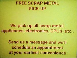 Find your yard today. 10 Scrap Yards that pick up scrap metals for free. 100 FREE Pick Up of ALL Scrap Metal Appliances Electronics.